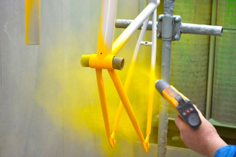 Покраска велосипеда порошковой краской позволяет добиться максимальной прочности, долговечности и устойчивости покрытия. Окраска бывает матовой, глянцевой, с эффектом металлик, а также флуоресцентная.